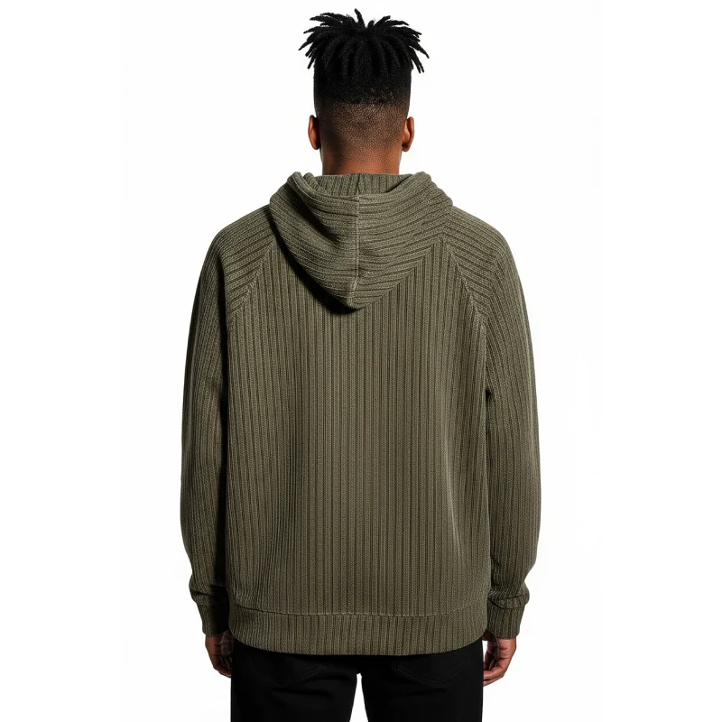 Pullover Qurter Zipper features a stylish quarter zipper, attached hood, and soft fabric, offering comfort and a modern casual look.